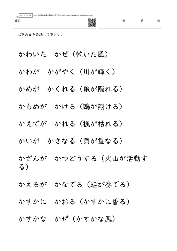 構音訓練のプリント 音読 2語文の音読課題 「か」 6枚【構音訓練のためのプリント教材】 X Facebook LINE Pinterest コピー 2026.03.23 2語文の音読課題 「か」 6枚【構音訓練のためのプリント教材】 全てのプリントをダウンロードするにはプレミアム会員登録が必要です。 →プレミアム会員について ←