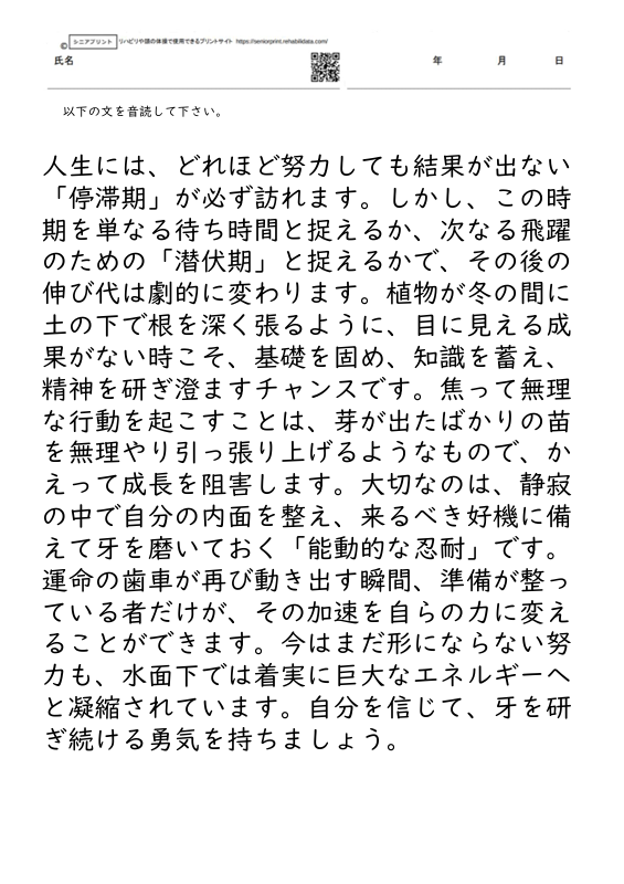 構音訓練のプリント 音読 350文字から360文字程度の音読課題 豆知識集 18枚【構音訓練のためのプリント教材】 X Facebook LINE Pinterest コピー 2026.01.16 350文字から360文字程度の音読課題 豆知識集 18枚【構音訓練のためのプリント教材】 全てのプリントをダウンロードするにはプレミアム会員登録が必要です。 →プレミアム会員について ←