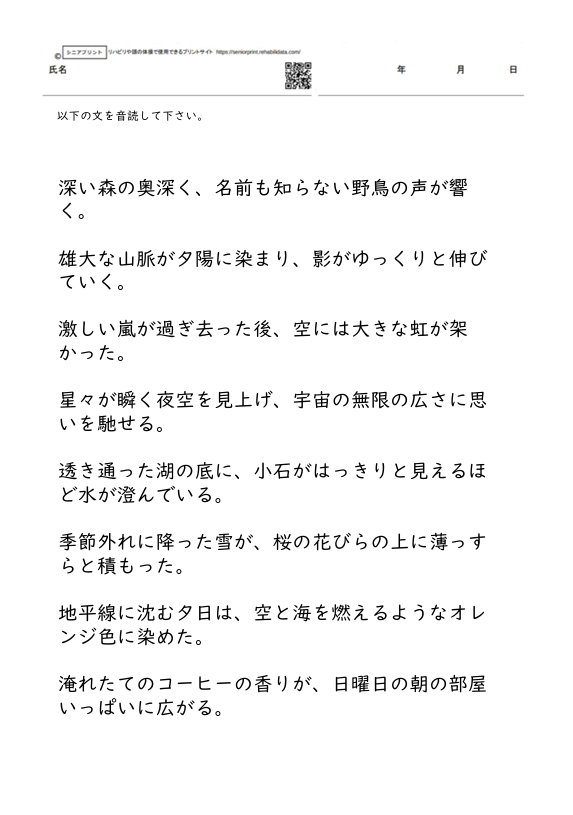 構音訓練のプリント 物語文(長文)の音読課題② 10話 【認知症予防・構音訓練のプリント】